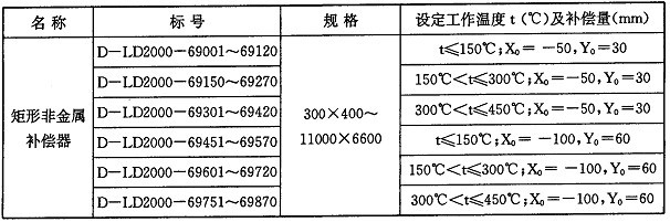 矩形非金屬補償器根據(jù)不同的工作溫度和補償量進行分類,編目如下: